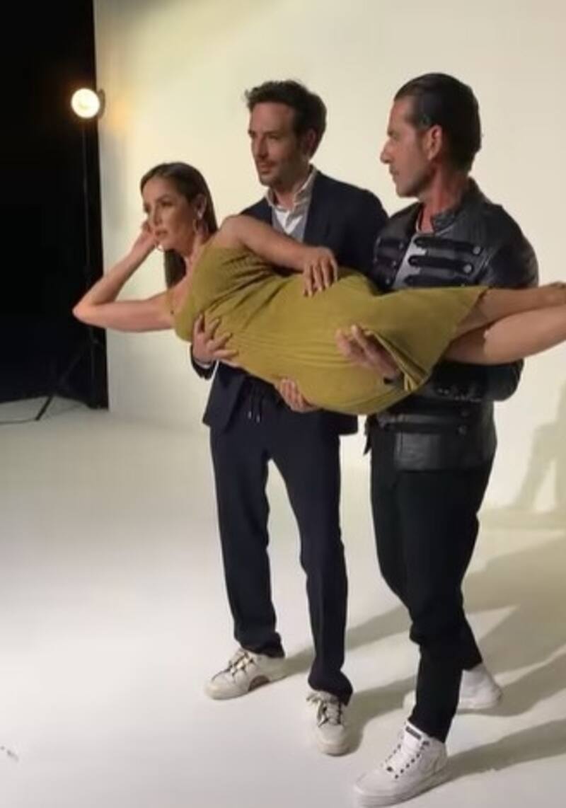 Como parte de la sesión, la actriz debía ser levantada por los dos galanes, quienes debían ponerla en posición horizontal. Mientras Sebastián la sujetaba desde las caderas hasta los brazos, Gregorio de las piernas (ver video abajo).