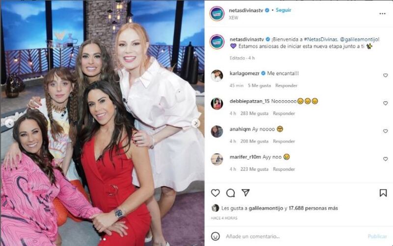 “No tienen idea lo que me emociona este proyecto @netasdivinastv lo agradecida que estoy contigo @foxmuller29 y tu producción. La felicidad que me da estar ahí con estas mujeres que conozco y admiro hace mucho. Estoy conmovida por su recibimiento, abrazos y calidez. Gracias @paolarojas @natalia_tellez @danielamagun @consueloduval. Vámonos”, refirió la también modelo.