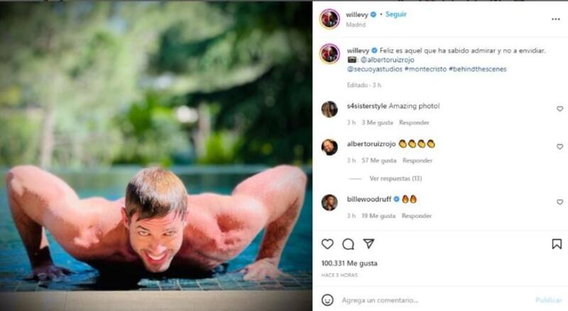 William publicó una foto en su cuenta de Instagram. “Feliz es aquel que ha sabido admirar y no a envidiar”, escribió. A esta publicación añadió varios hashtags, entre ellos, “Montecristo”, además etiquetó al director de la producción Alberto Ruiz Rojo, quien capturó este momento durante las grabaciones.