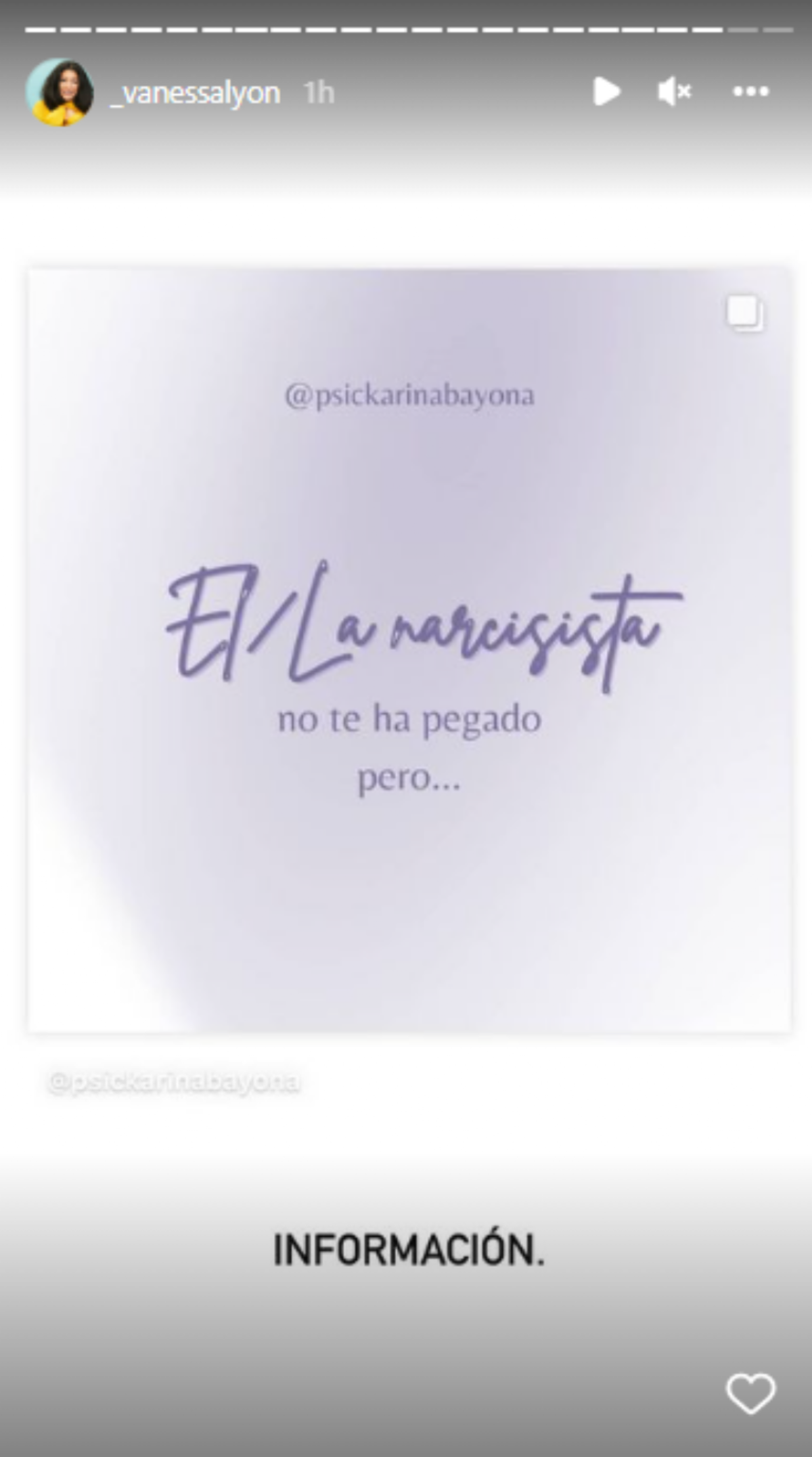 Posteriormente, publicó imágenes en las que describió a gran detalle las características de una persona narcisista y aunque no mencionó a Carlos Calderón, por el contexto en el que esto sucede, hay quienes aseguran que esos mensajes llevarían dedicatoria.