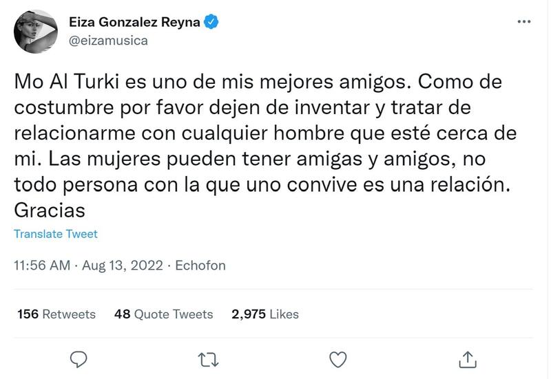 "Ya sé que casi nunca escribo por aquí! Pero siempre los leo? les mando muchos besos y espero que estén teniendo un buen fin de semana", escribió la también cantante en su cuenta de Twitter para cerrar el tema.