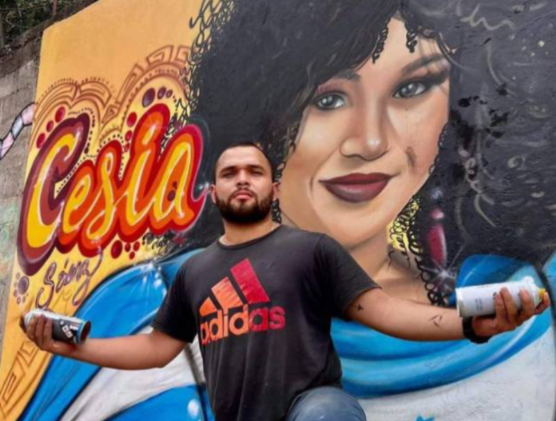 Roney Fernández, un talentoso muralista de dicho país fue el encargado de realizar dicha obra como una forma de agradecimiento a Cesia por mostrar el talento que existe en Honduras.