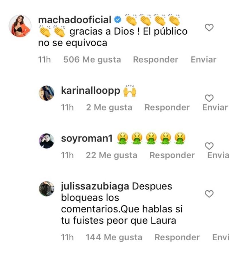 “Después bloqueas los comentarios. Qué hablas si fuiste peor que Laura”, “El público votó por Mane no por ti”, “Le das las gracias a Laura porque tres meses te pagaron gracias a su rating”, “Telemundo es un fraude así como tú ganaste”, “Pero contigo se equivocó. ¿Con qué moral chica?”, “Se equivocó al elegirte a ti como ganadora”, “Tu eres la menos indicada para hablar de esto”, escribieron cibernautas.