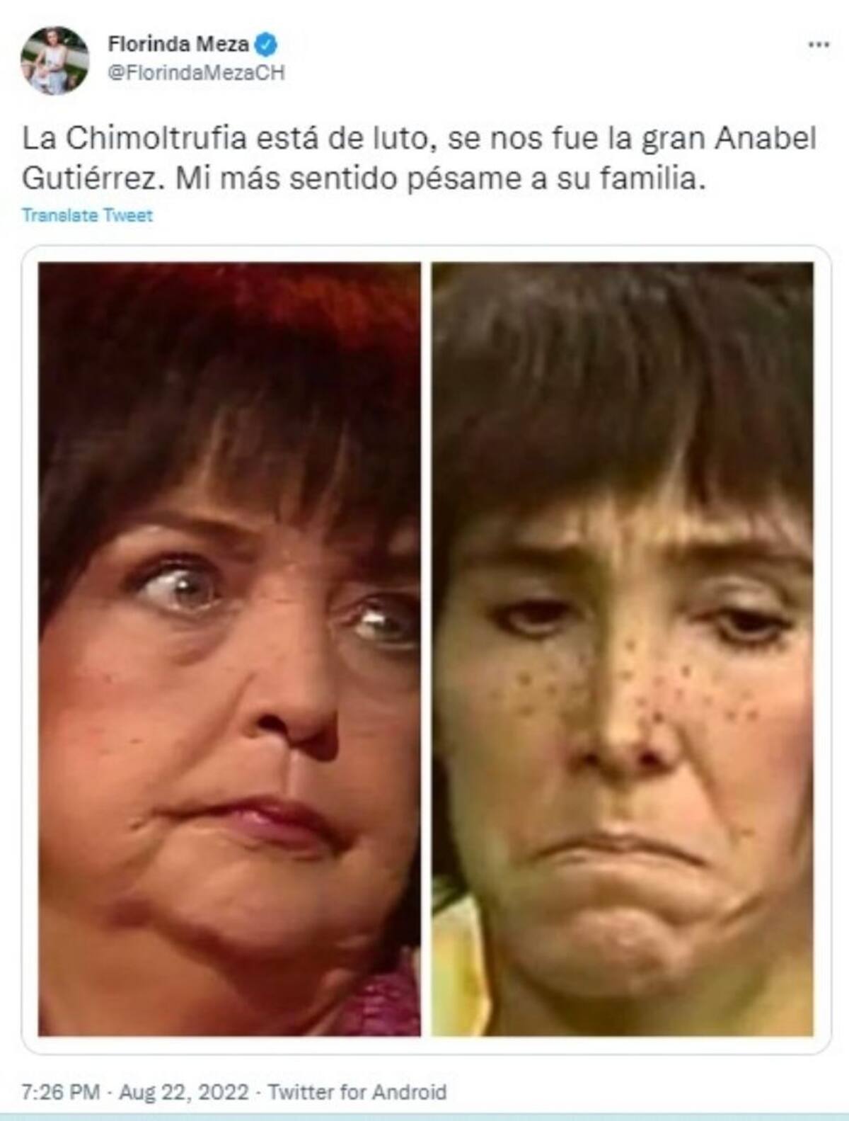“La Chimoltrufia está de luto, se nos fue la gran Anabel Gutiérrez. Mi más sentido pésame a su familia”, escribió Florinda Meza en sus redes sociales, pero más allá de reconocer el mensaje de condolencia, los fans optaron por tacharla de hipócrita, al recordar que recibió maltratos y humillaciones por su parte.