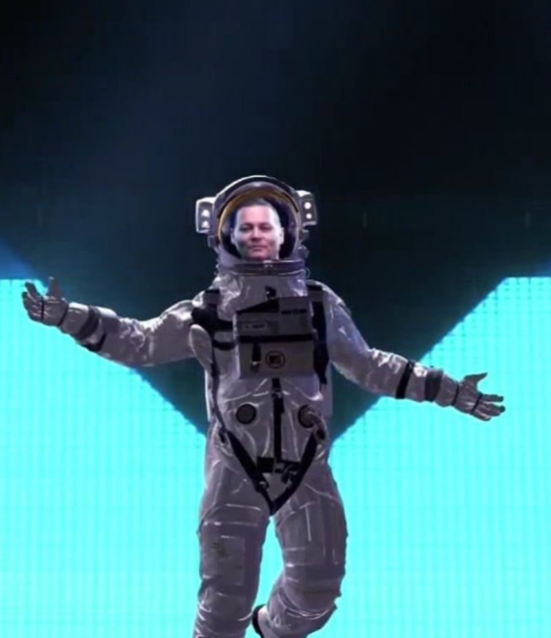 Aunque el actor no estuvo presente de forma física, sí apareció sobre el escenario vestido de astronauta con la ayuda de un proyector que no solo puso la cara del famoso sobre el traje, sino también se pudo escuchar la voz del intérprete de Jack Sparrow.