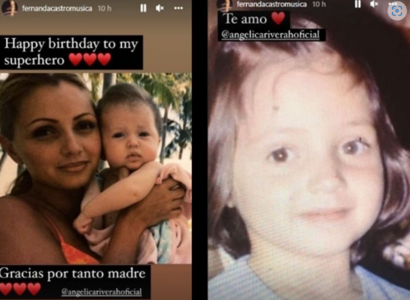 “All I need (Todo lo que necesito)”, escribió Fernanda junto a ese posteo que fue precedido por una fotografía del baúl de los recuerdos en la cual se aprecia a Angélica cuando era niña, sobre esta instantánea Fernanda expresó un “Te amo”, además, también subió otra captura en la que su madre la tiene en brazos.