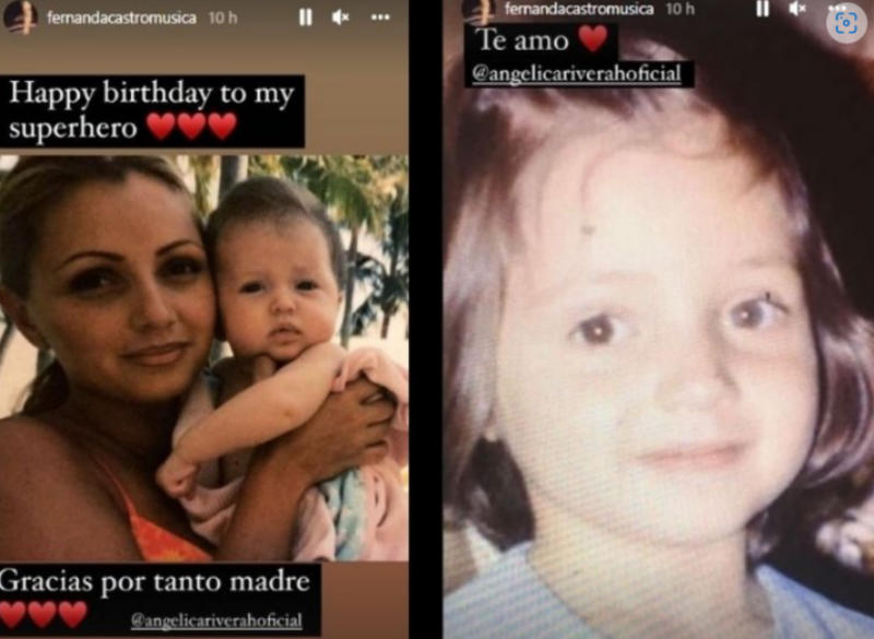 “All I need (Todo lo que necesito)”, escribió Fernanda junto a ese posteo que fue precedido por una fotografía del baúl de los recuerdos en la cual se aprecia a Angélica cuando era niña, sobre esta instantánea Fernanda expresó un “Te amo”, además, también subió otra captura en la que su madre la tiene en brazos.