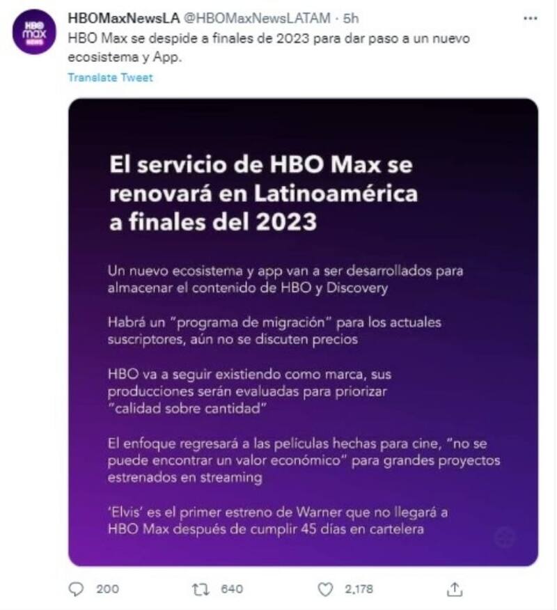 Además de eso, circula un comunicado de prensa en Twitter en la que supone es una cuenta de HBO Max, relacionado con noticias sobre la plataforma, aunque no aparece con la insignia de verificada, en el cual se indica que el servicio de HBO Max se renovará en Latinoamérica a finales de 2023.
