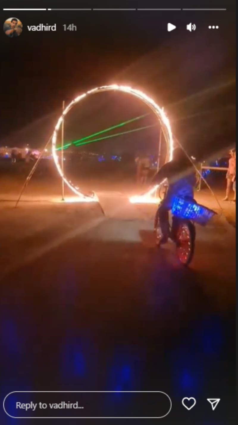 Los famosos han compartido en sus redes sociales muchas de las actividades que han realizado en este espectacular evento, aunque, sin duda, una de las más impresionantes fue la del arco en llamas que atravesaron montados en un bicicleta.