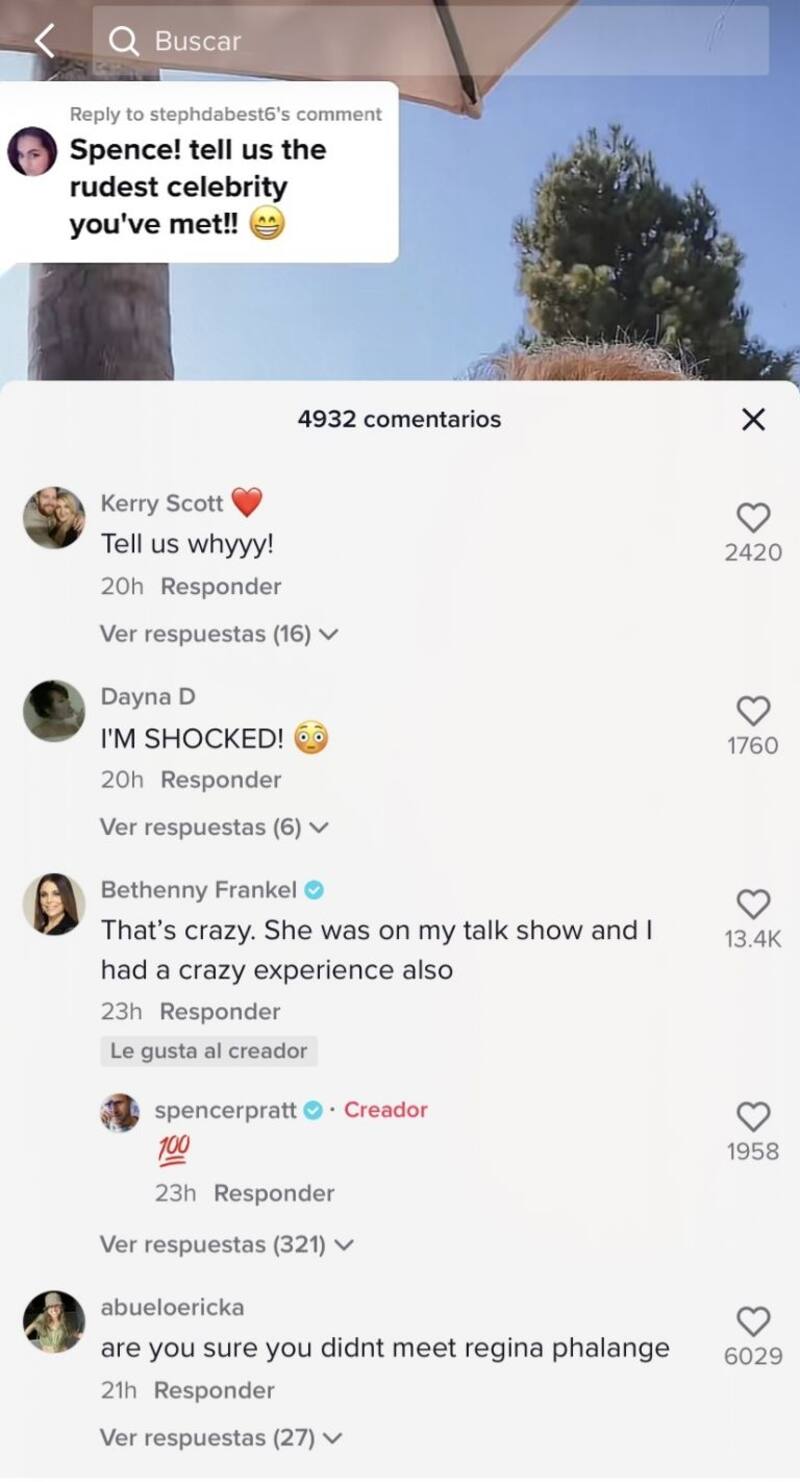 La protagonista del reality show The Real Housewives of New York City, Bethenny Frankel, coincidió con Pratt a quien comentó en su publicación: “Eso es una locura. Ella estaba en mi programa de entrevistas y también tuve una experiencia loca”.