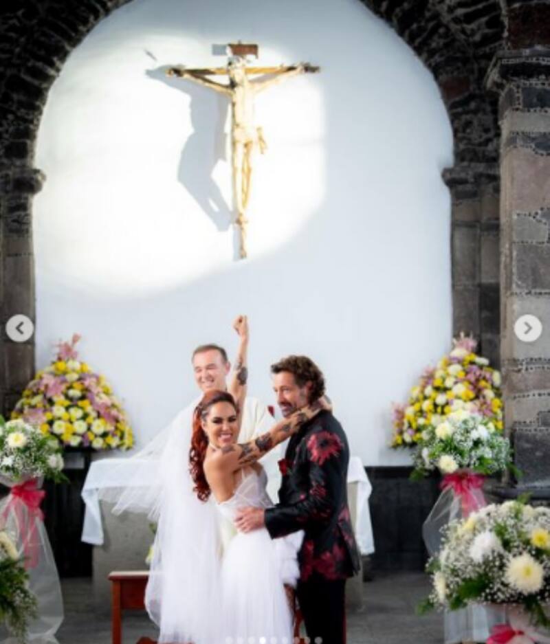 A través de Instagram circularon unas fotografías que muestran a Sara y al actor mexicano contrajeron nupcias; sin embargo, para sorpresa de muchos, las imágenes corresponden a una de las escenas de la telenovela en la que ambos participan actualmente.