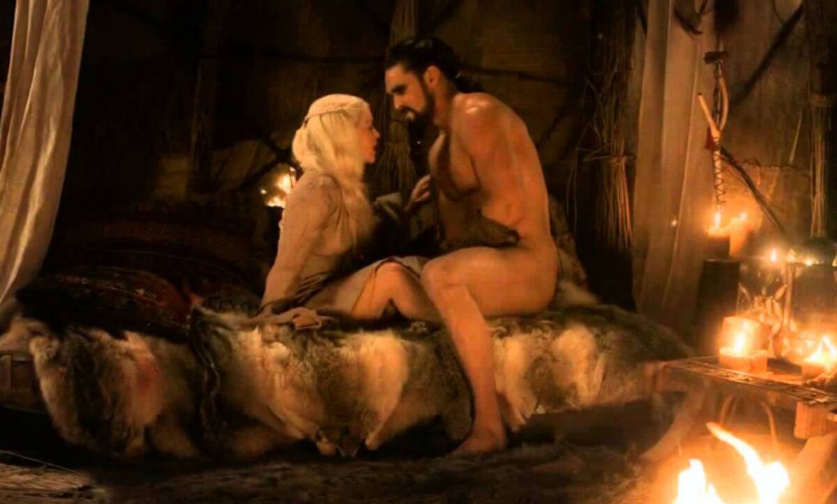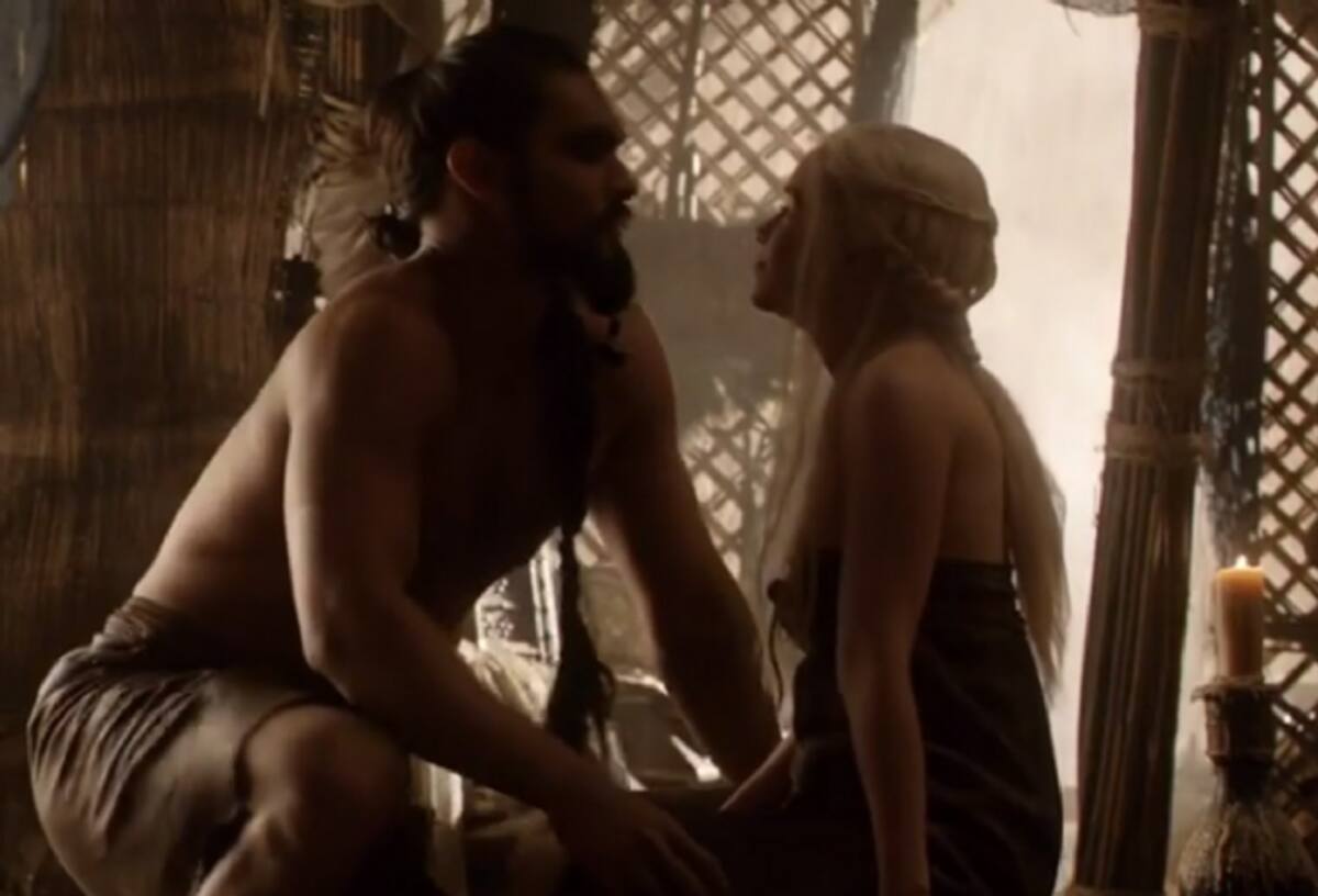 Clarke reveló para Daily Mail que Game Of Thrones era su primer trabajo frente a una cámara, por lo que al momento de grabar las escenas de sexo con Momoa entró en pánico al no saber que hacer, pues debió desnudarse delante de todo el equipo de filmación.
