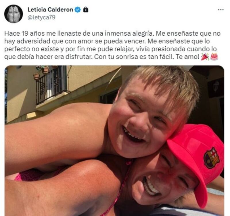 Calderón además publicó una fotografía con el festejado, Carlo y ella, en donde aparecen abrazados mientras el festejado aparece lleno de regalos, entre ellos un balón, unos audífonos y hasta un muñeco de acción, mientras todos posan muy sonrientes para la foto familiar.