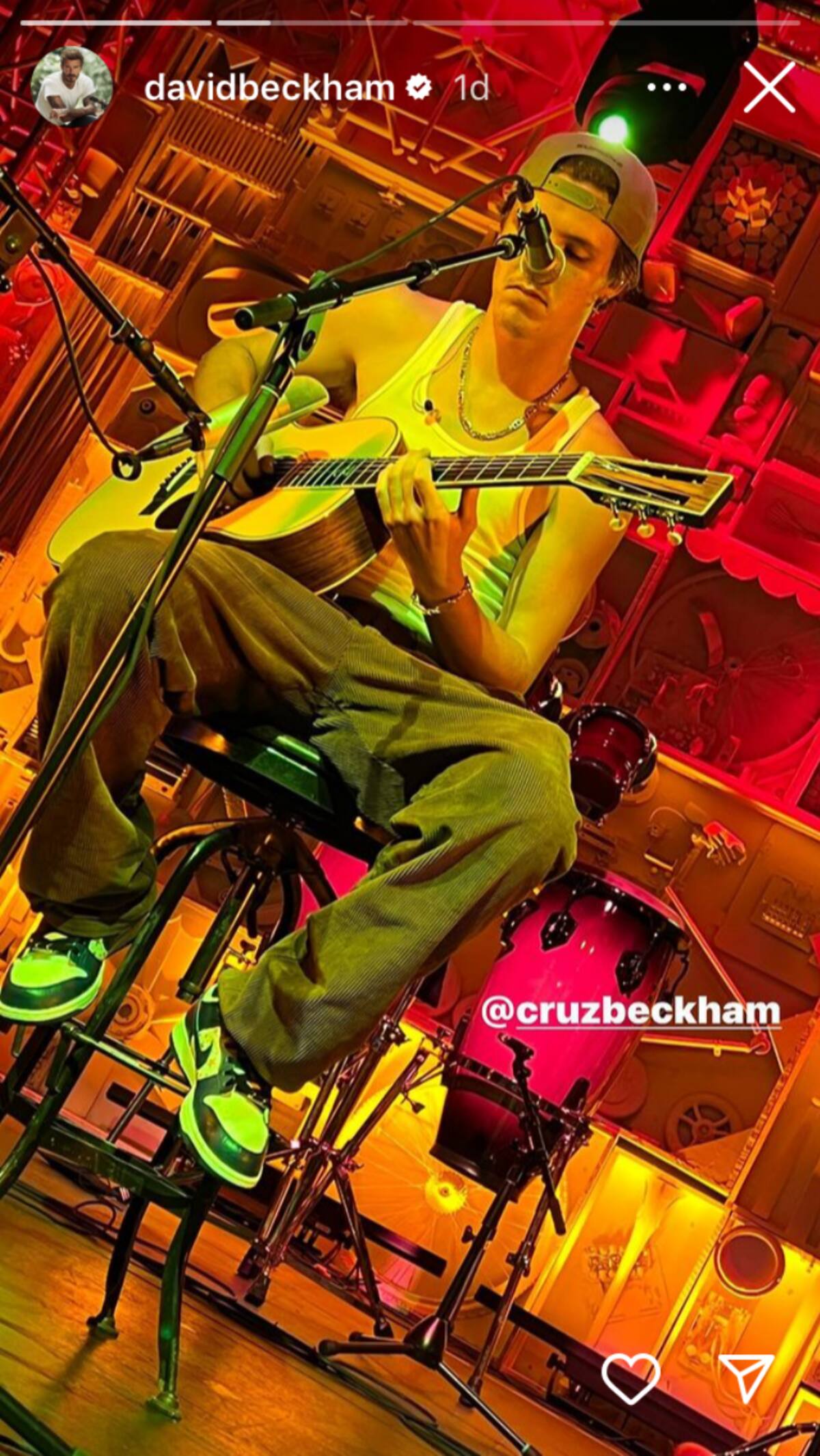 David Beckham tomó algunas fotografías en el evento y las compartió muy orgulloso en su perfil de la plataforma. En los registros, el ex futbolista mostró a su hijo sentado en una silla alta mientras sostenía una guitarra con el micrófono en frente.